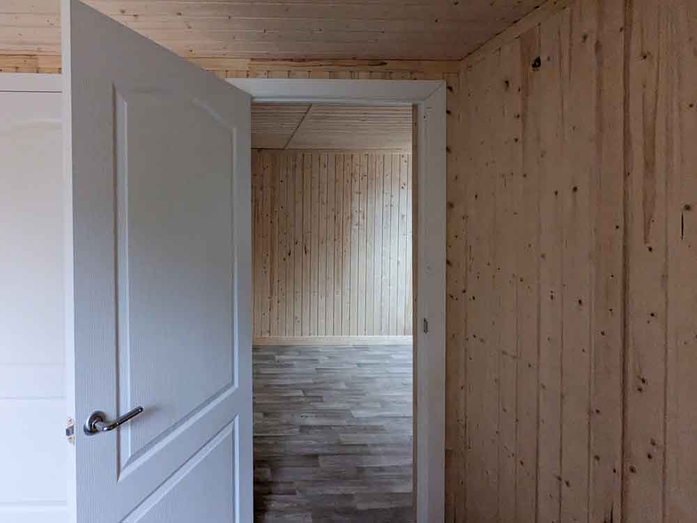 • В данном модульном здании можно заменить базовую внутреннюю отделку, на любой вид внутренней отделки, например: ЛДСП, панели СМЛ или ГВЛО и т.д.